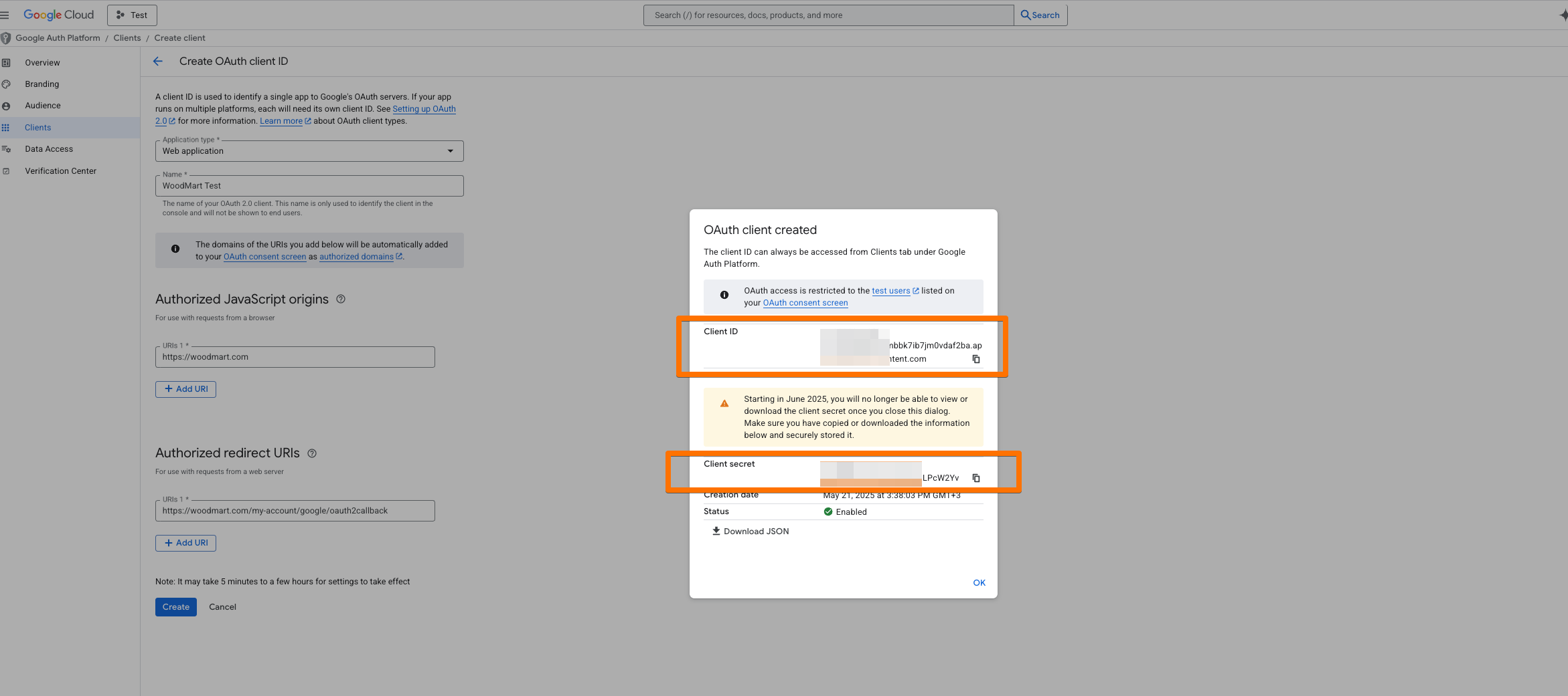 - Go ahead and create new OAuth 2.0 credentials for your web application in the “Clients” tab as per the screenshots: