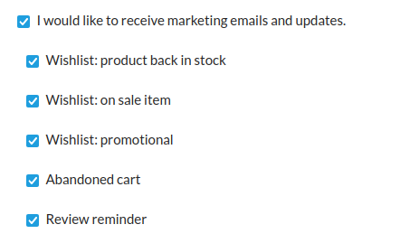 The Marketing consent option gives customers complete control over their communication preferences, ensuring a more transparent and user-friendly experience. Initially, a customer can agree to subscriptions with a single checkbox during registration. Afterward, they can easily change their preferences in the Account details section of their My account page. Here, they can either make a general change or more flexibly enable or disable specific types of subscriptions, such as those for back-in-stock notifications or review reminders. By providing this granular control, the feature helps stores comply with privacy regulations and build trust with customers by sending only the most relevant communications.