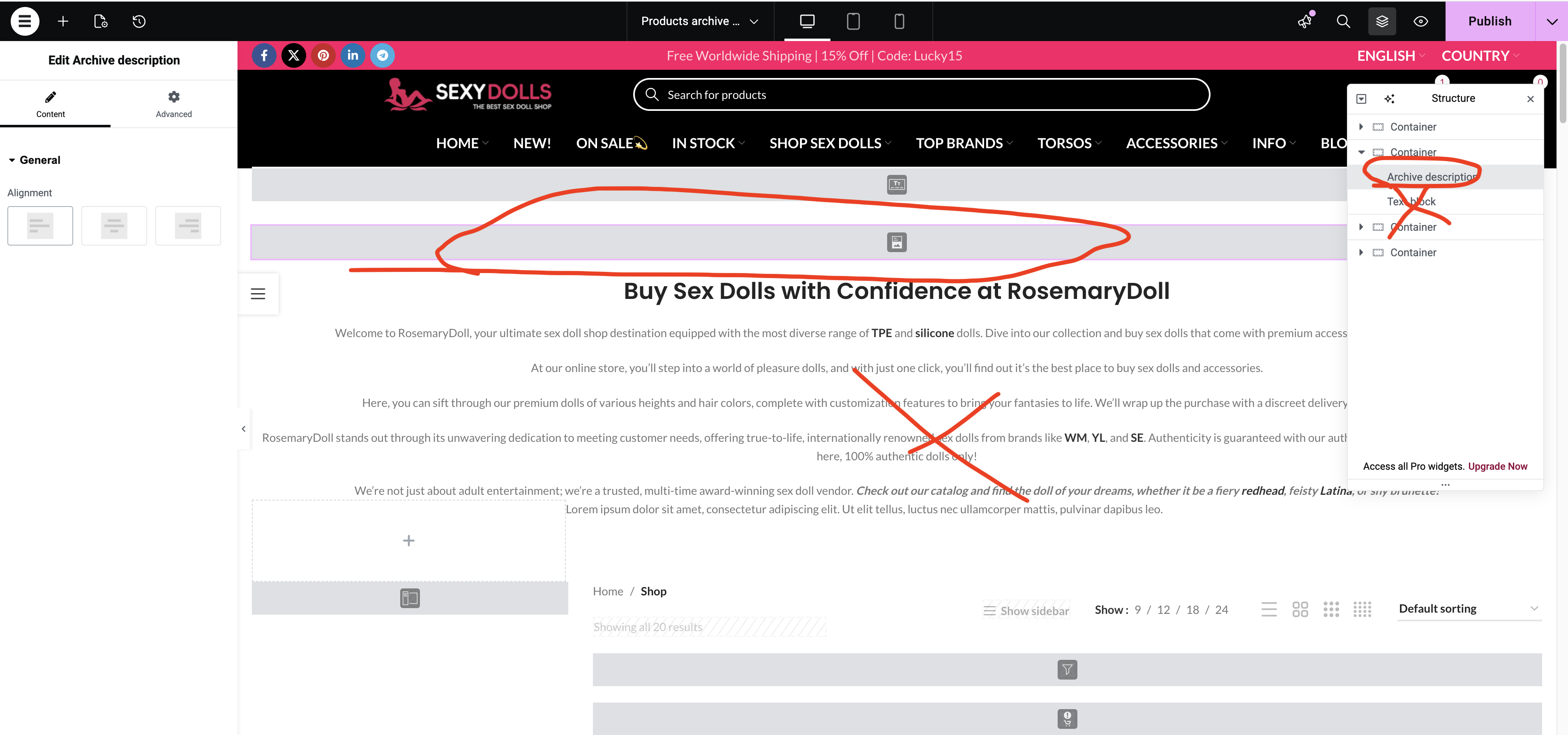 2. Add a dedicated element called “Archive description” and remove your custom text