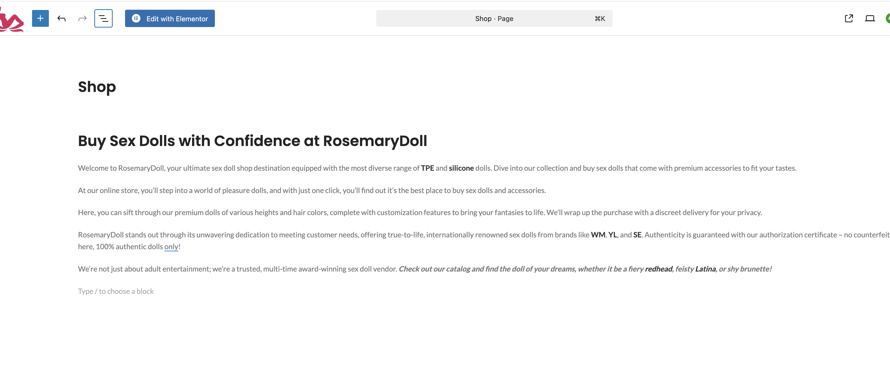 3. To add a text for the shop page only, open your shop page in Dashboard -> Pages -> edit the shop page and add your content as shown on the screenshot