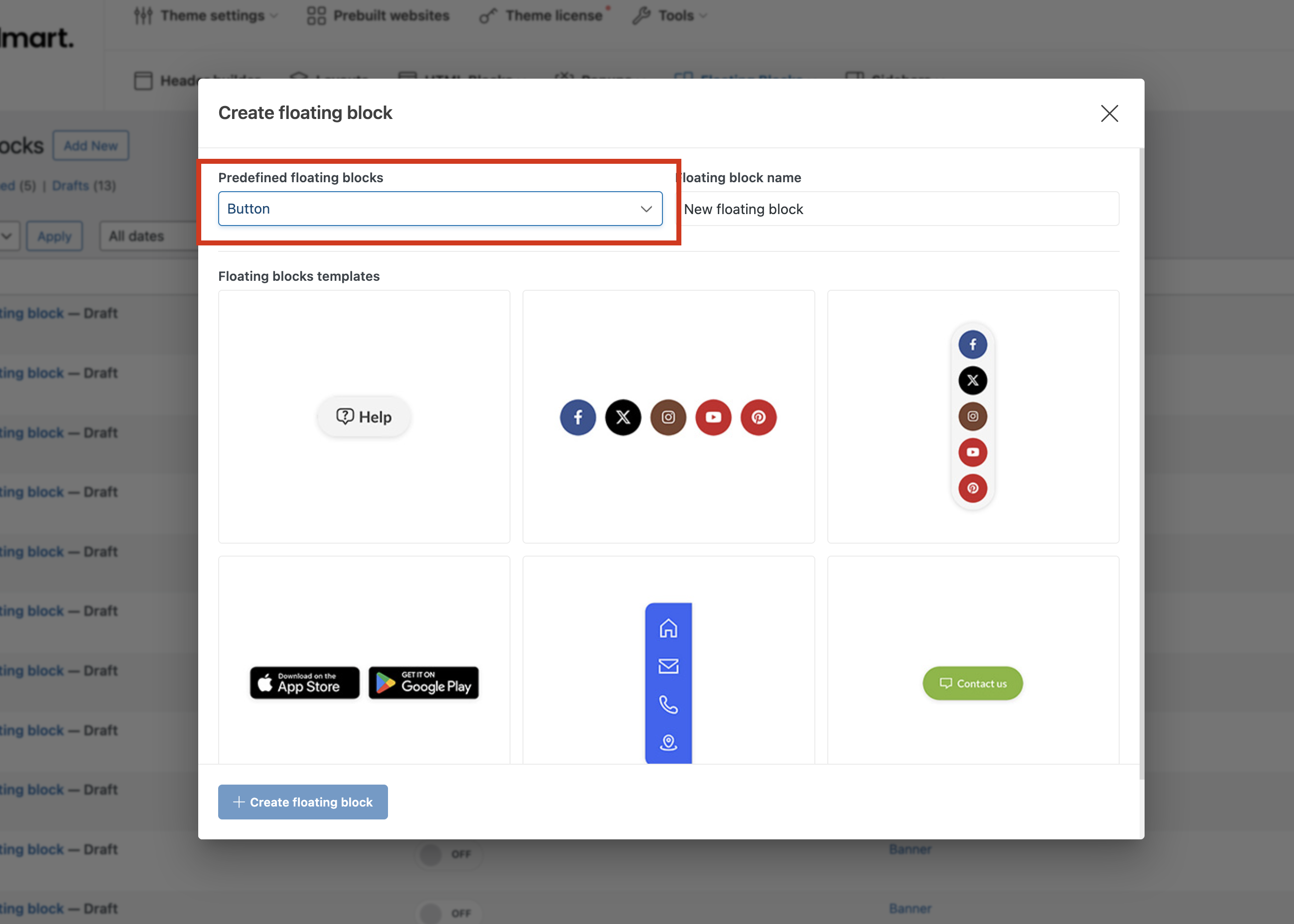 1. Visual block builder: When I open a new floating block, I only see a very plain editor. Which settings do you recommend to enable a more visual block builder so that I can design it more easily? Right now, it’s difficult to style the block. See screenshot for more information