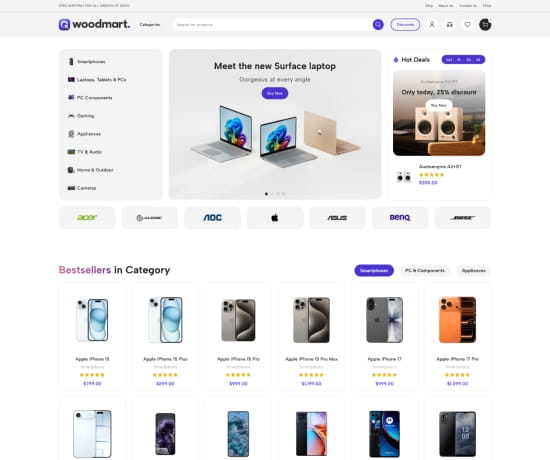 The release of WoodMart 8.4 introduces several highly requested features, four new pre-built websites, and various improvements to the WooCommerce builder. This update focuses on enhancing store performance and expanding design options, providing users with more tools to customize and optimize their e-commerce platforms. To begin with, to provide more flexibility across different niches, we’ve added four diverse, high-converting demos: