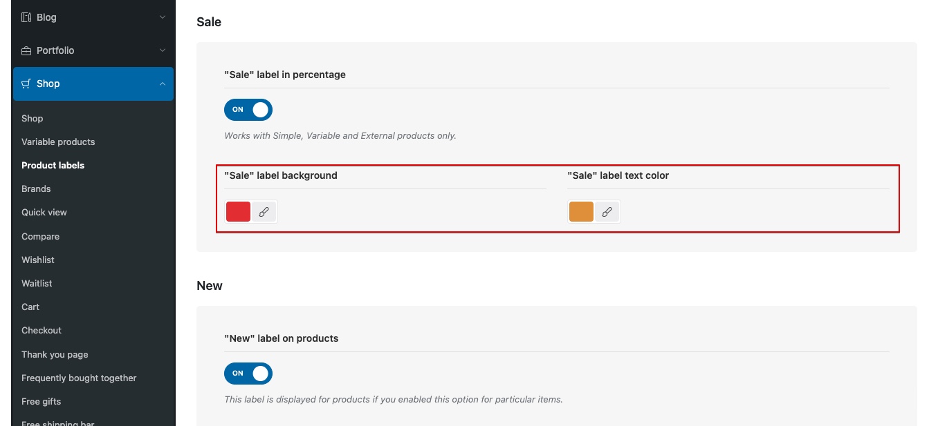 To achieve the required contrast, you need to adjust either the text color or the background color to meet the necessary values. This can be done in various ways depending on the element being modified. If the element is part of the builder, start by checking the element’s settings for available color options. In other cases — such as the primary color, notices, or product labels — you can adjust the colors directly in the Theme Settings.