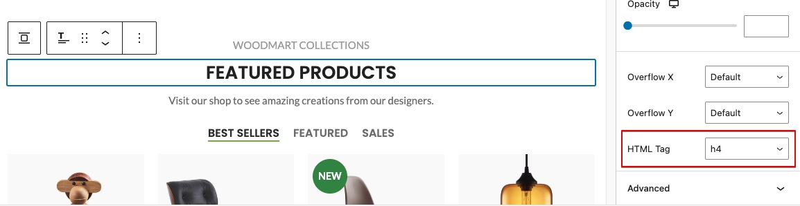 tag to the heading element you consider the main one by using the Tag option, which can be found in the Title element’s settings (its location is described in the previous section). Alternatively, when using the layout builder, make sure the page includes a Page title, Archive title or any other heading element that uses an <h1>